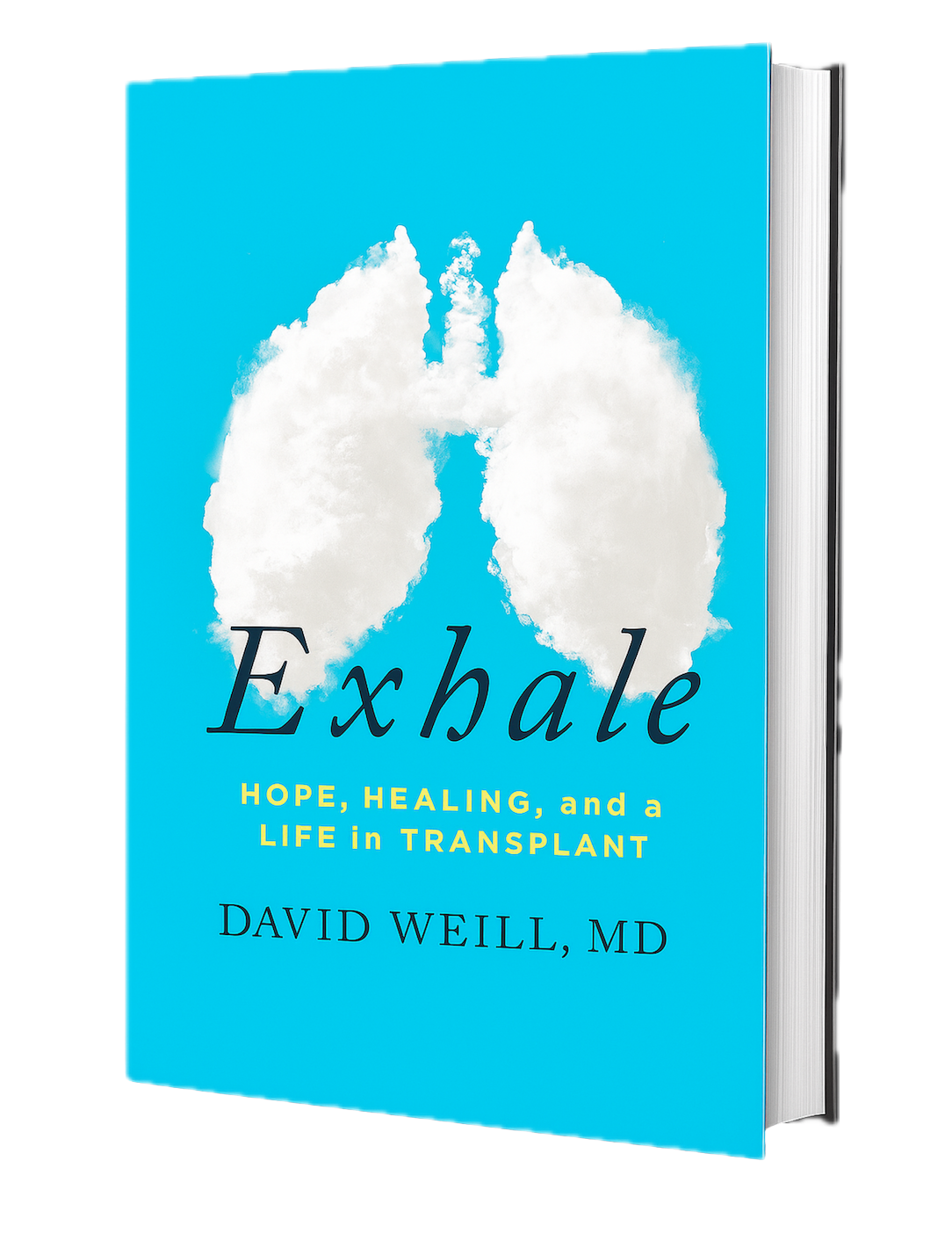 “Dr Weill, I loved listening to your book and hearing you tell your story. You were so honest and authentic. Dr. Weill was my daughter's adult CF physician and Transplant physician at Stanford during the entire period he shared in this memoir. We were always so grateful that he was her physician and are honored to know him. Listening to the book was especially poignant to me as I know his voice and could see him in my mind throughout the hospital and in Palo Alto where we also lived. He described himself and the struggles of CF and transplant patients so well. His story is true to how we knew him and this field of transplantation. Our daughter was a success story thank goodness but not without the trauma of having a critically ill adult child and the rigors of transplant that are no walk in the park, but is also a miracle. If you want to read about an excellent physician and his inner life and the true story of lung transplantation then Exhale is an excellent read. So grateful you wrote this book and we will share it with the ones we love. I hope that people understand the remarkable work of transplantation from Exhale and the miracle gift that is offered by donor families. Because of the gift given to our daughter she is living a life of her dreams even with a new baby born of a surrogate mom and being married to her soulmate albeit it is still not always smooth sailing. Becoming a transplant patient is giving up one disease for another complication or two if you have a successful transplant but in her case it is all so worth it and we are so indebted to Dr. Weill.
